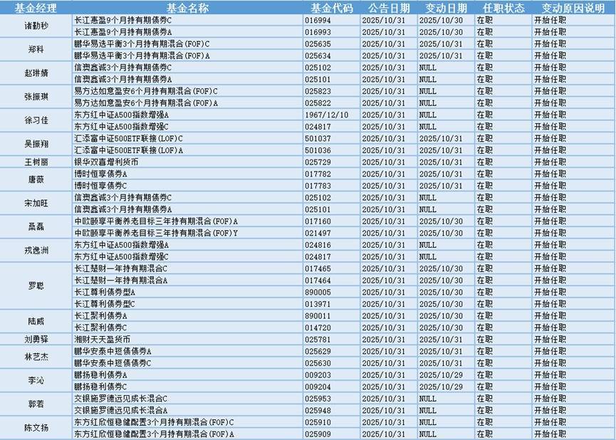 新基金经理上任方面,汇添富基金吴振翔现任基金资产总规模为198.36亿元,管理过的基金多为债券型和指数型基金,任职期间回报最高的产品是汇添富沪深300安中指数A(000368)点点策略网,为指数型基金,在任职的11年又362天时间内获得204.80%的回报,至今仍在管理该基金。新上汇添富中证500ETF联接(LOF)A、汇添富中证500ETF联接(LOF)C这两只基金产品的基金经理。