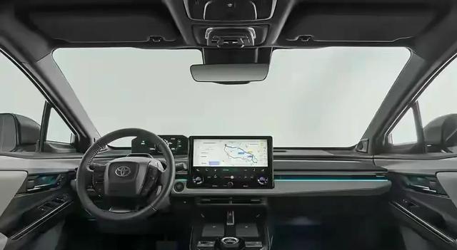 内饰方面,配备了悬浮式的中控台设计,上方是硬朗的线条环绕处理,中间是贯穿式的矩形网格造型和空调出风口融为一体,看起来很有档次,左边搭载了12.3英寸的液晶仪表屏,中间是14英寸的悬浮式中控大屏,内置了丰田最新的AM车机系统,支持apple carplay,android auto,4G网,OTA升级等主流功能,有意思的仪表屏还放在中控台最里面,值得一提的是中控屏两侧还保留了物理按键和实体旋钮,营造了内饰科技氛围,另外新车配备了精致的旋钮的换档,扶手箱还做了镂空造型设计,支持两个手机同时无线充电,在加上丰田的魔术空间,实用性非常高。